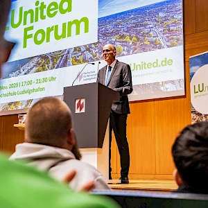 Am 6. November 2025 fand das zweite LUnited Forum an der Hochschule für Wirtschaft und Gesellschaft in Ludwigshafen statt. Rund 100 Teilnehmende von Ludwigshafener Vereinen und Initiativen sowie Vertreter:innen aus Politik, Verwaltung, Wissenschaft und Wirtschaft knüpften neue Kontakte, ließen alte Beziehungen wiederaufleben und nahmen konkretes Wissen für ihre Vereinsarbeit mit.